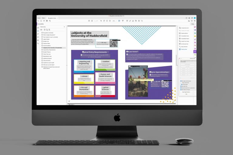An accessible PDF is a document that can be utilised by assistive technology. Your PDF will have an inbuilt structure that allows the user to navigate the document. Colour contrast, font choice/font size, interactivity, bookmarks and alternative text, all contribute to making a PDF accessible.